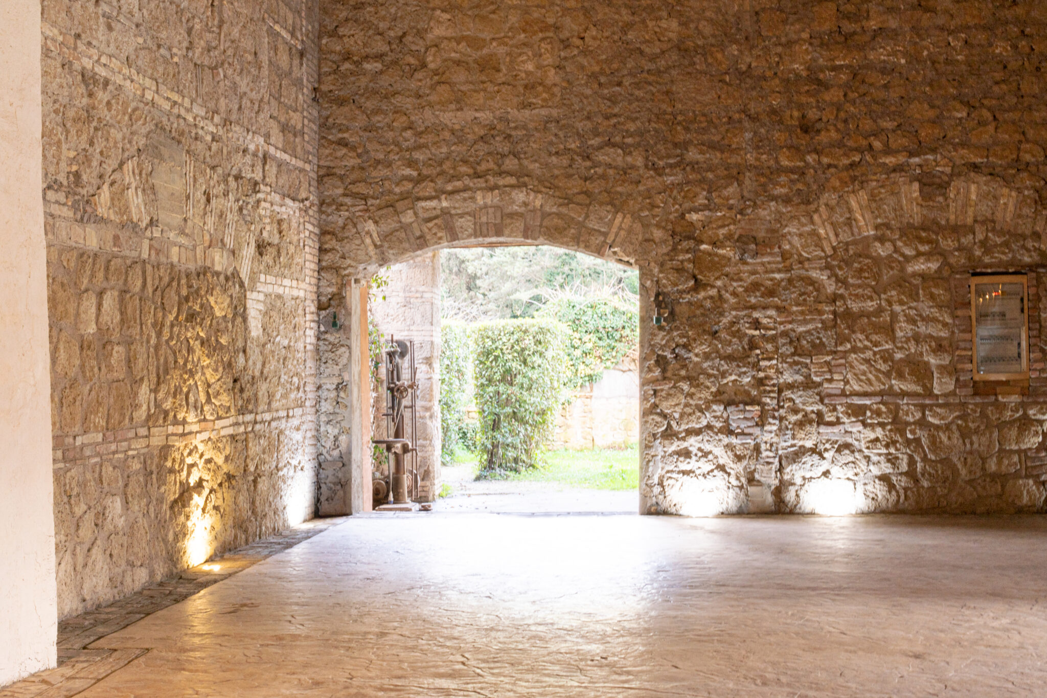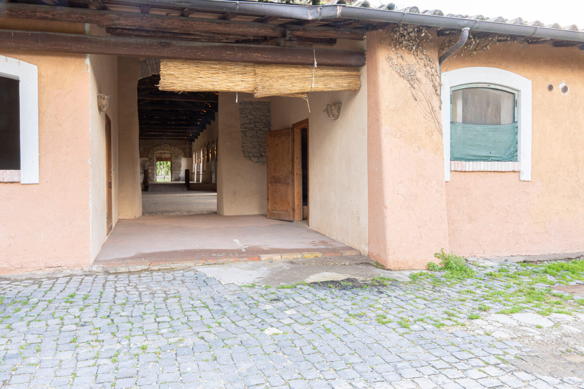 Complesso architettonico con spazi esterni e corte centrale, articolato su più ambienti comunicanti. Gli interni si sviluppano in sale di ampia metratura con distribuzione lineare e collegamenti funzionali.