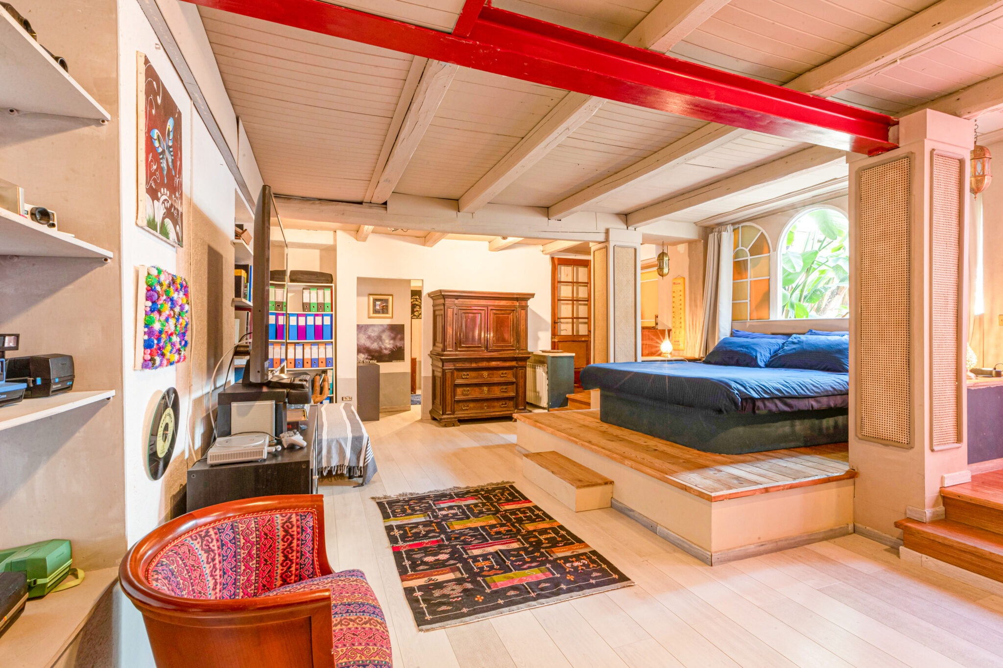 Circa 450 mq di spazio interno suddiviso in più ambienti principali adatti a diverse configurazioni di allestimento.