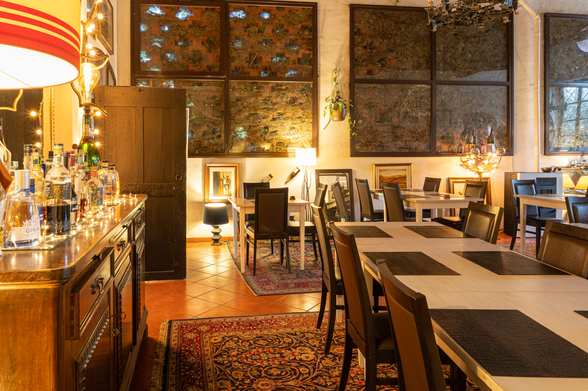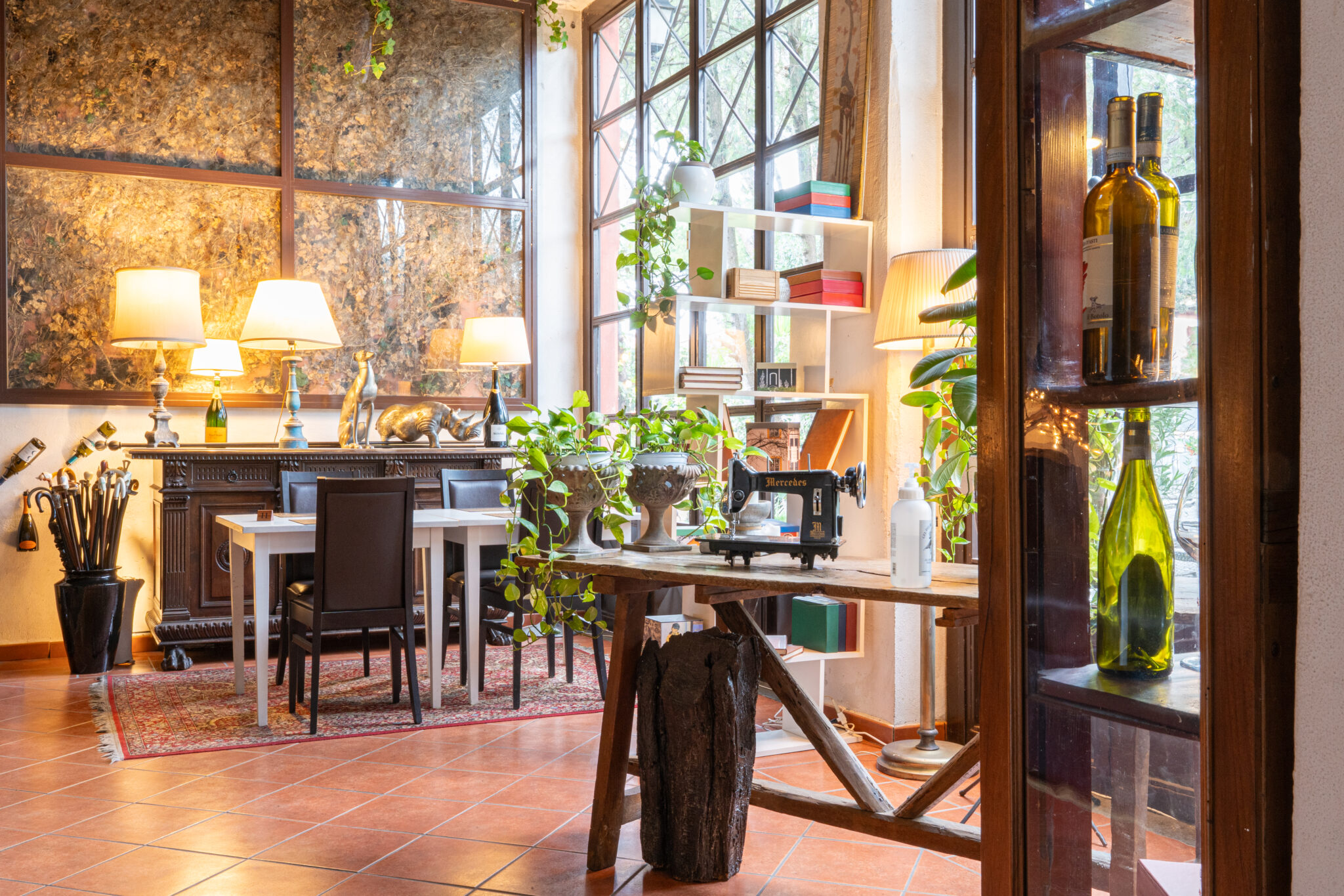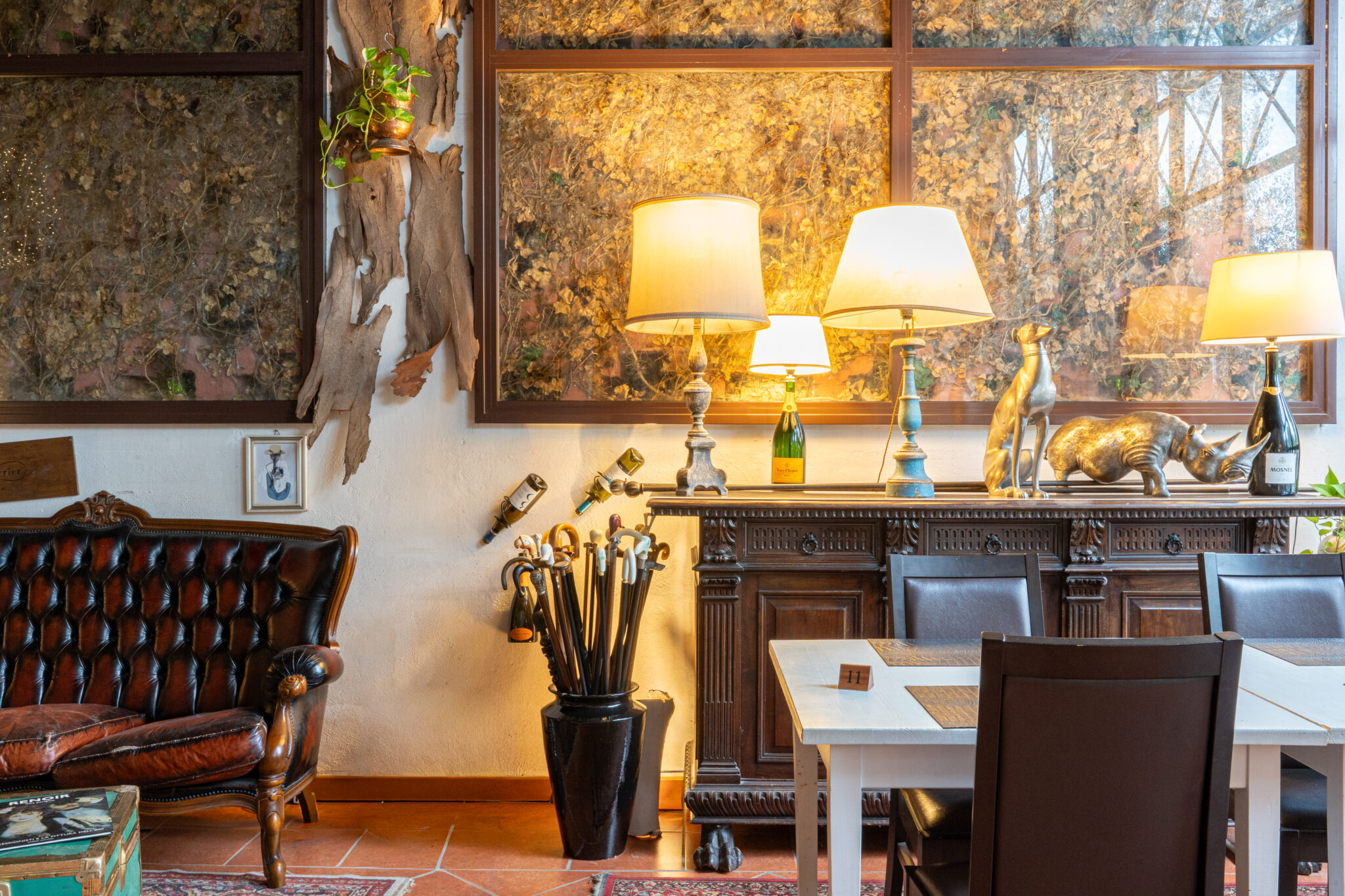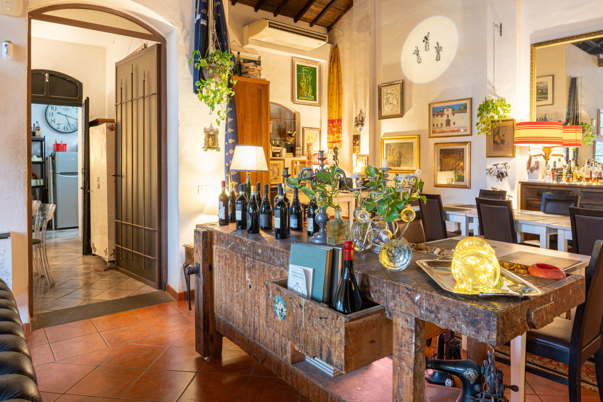 Circa 500 mq di spazio interno caratterizzato da un ampio salone open space con soffitti alti e travi in legno a vista, grandi finestre ad arco che illuminano l’ambiente e una zona bar dedicata.