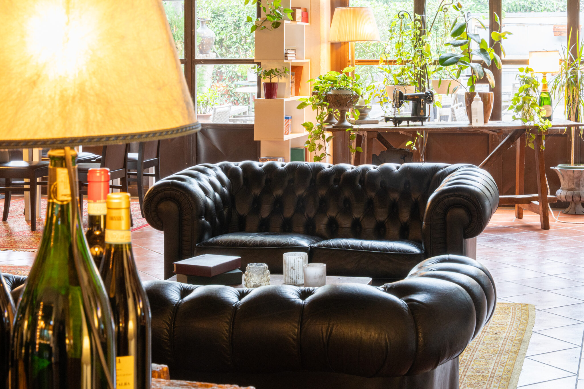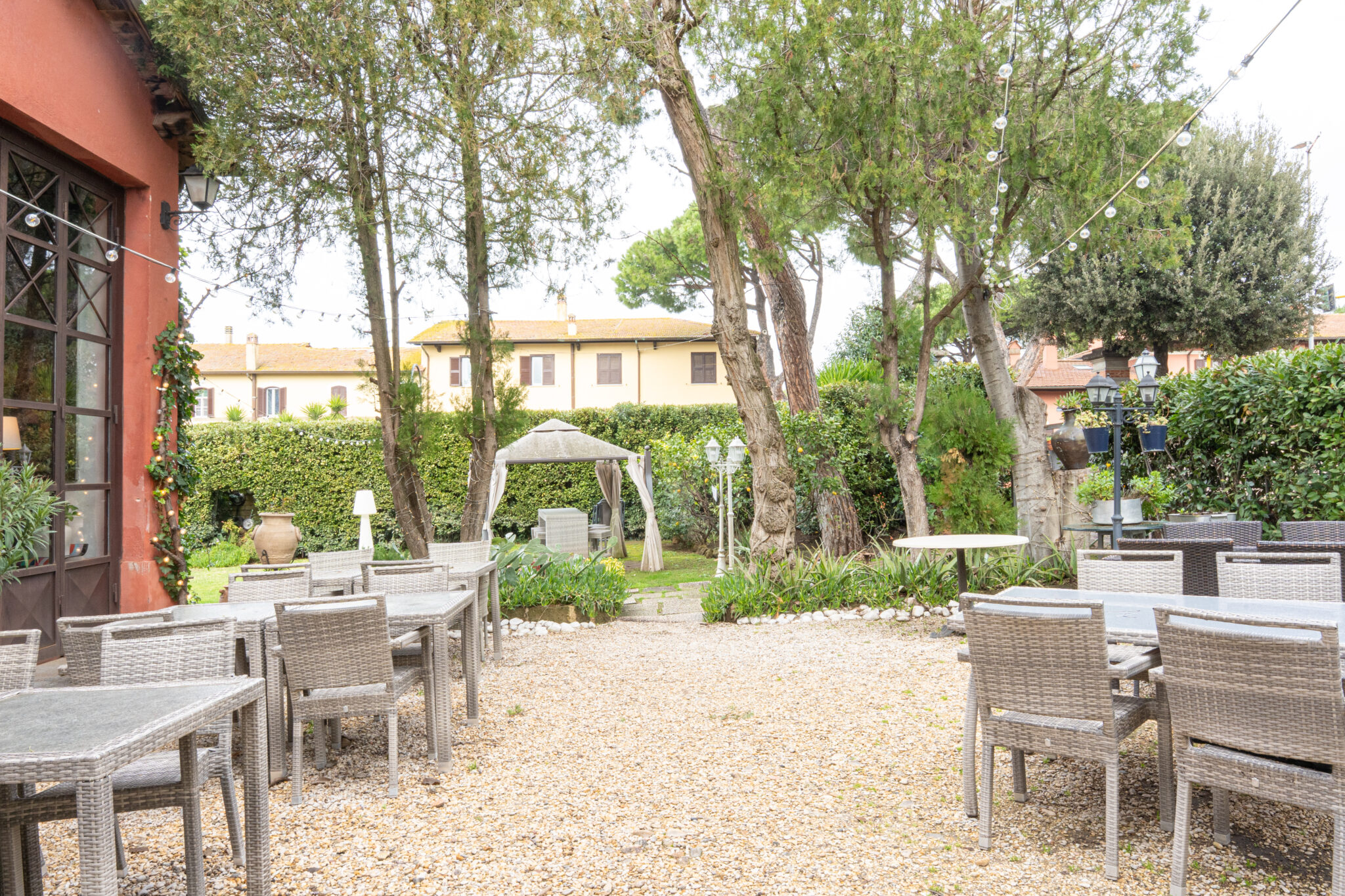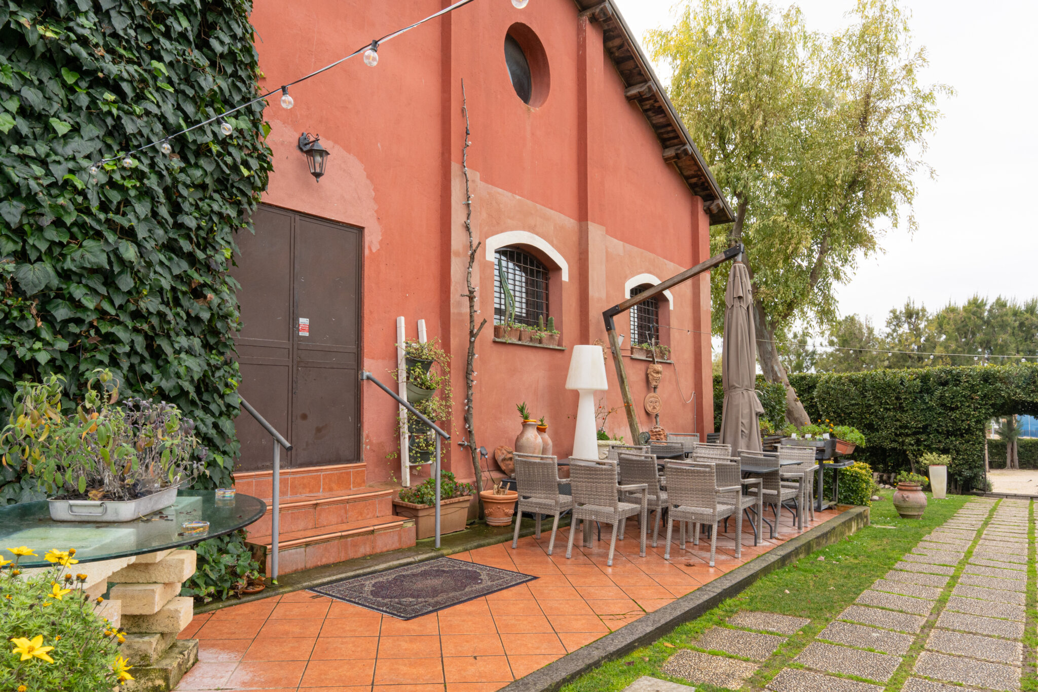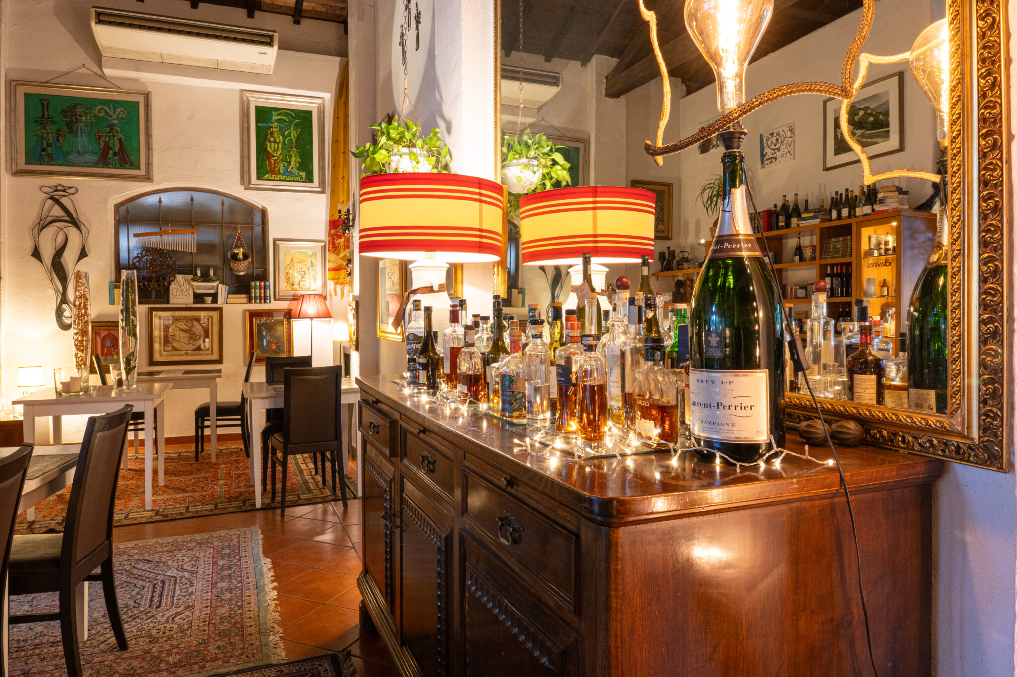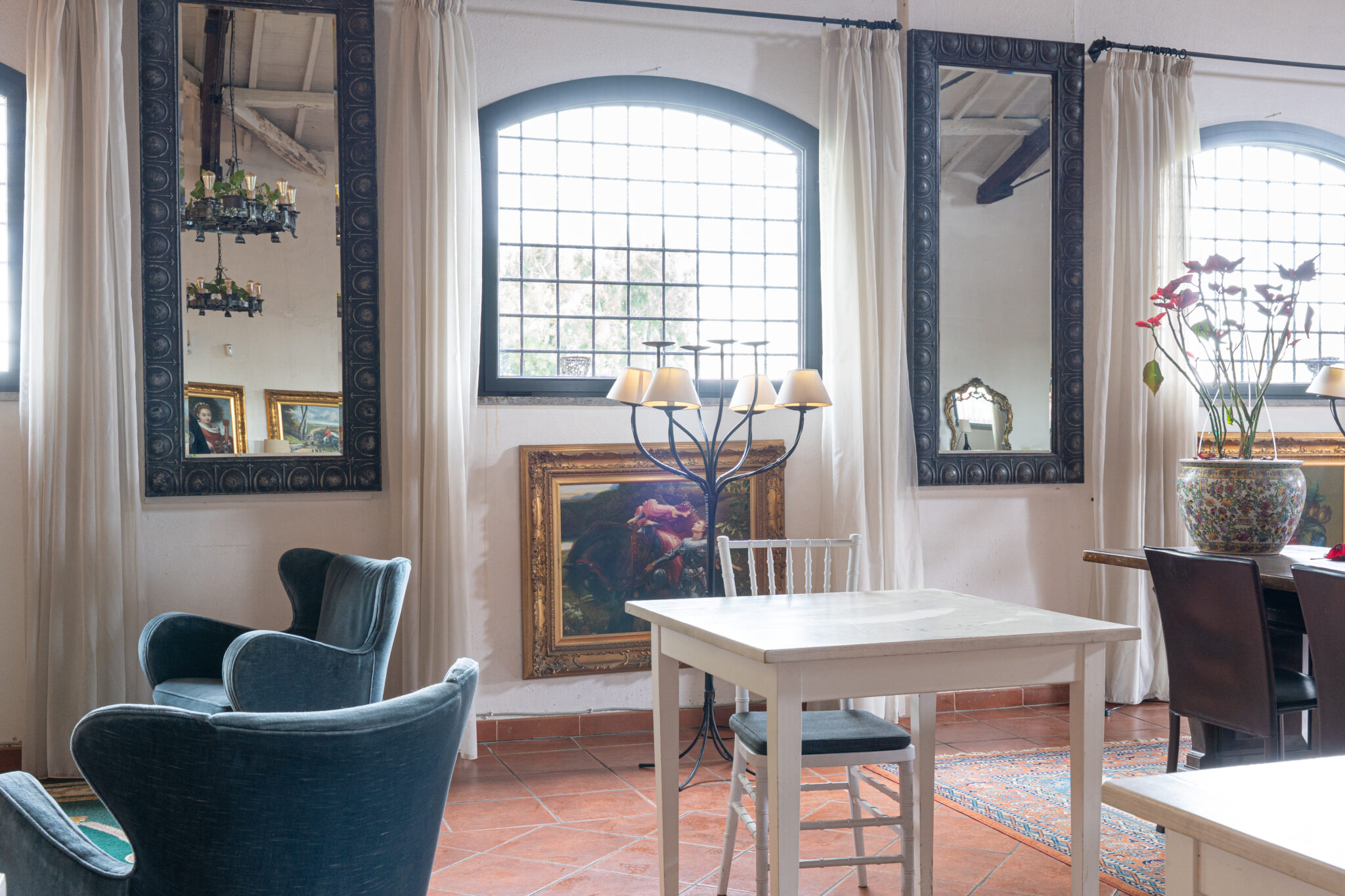 Circa 500 mq di spazio interno caratterizzato da un ampio salone open space con soffitti alti e travi in legno a vista, grandi finestre ad arco che illuminano l’ambiente e una zona bar dedicata.