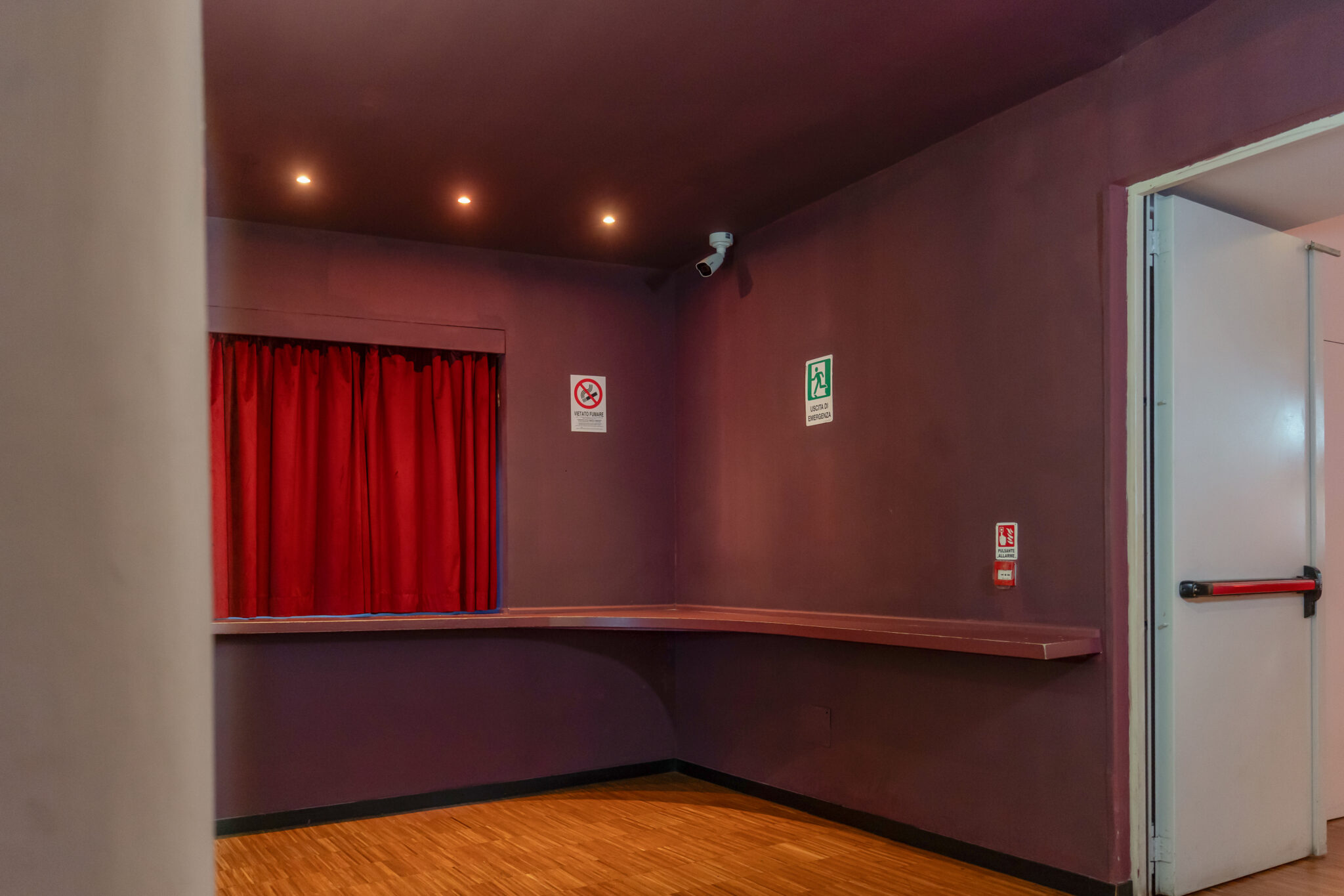 Location dallo spirito teatrale e contemporaneo, caratterizzata da una sala principale con palco attrezzato, impianto audio-luci professionale che trasforma lo spazio in un ambiente immersivo e altamente scenografico.