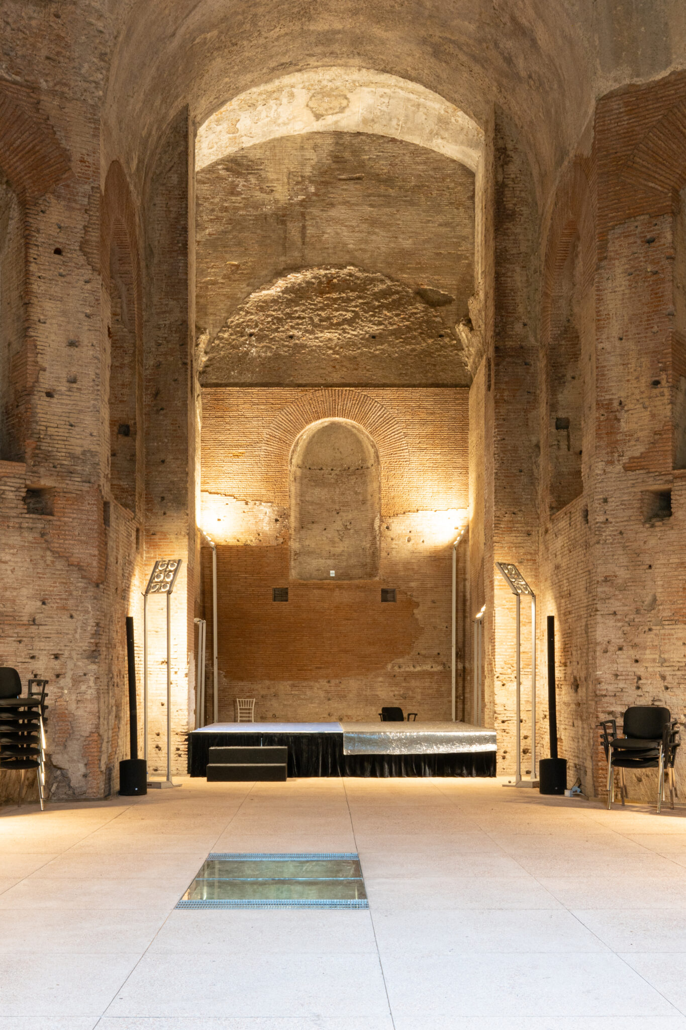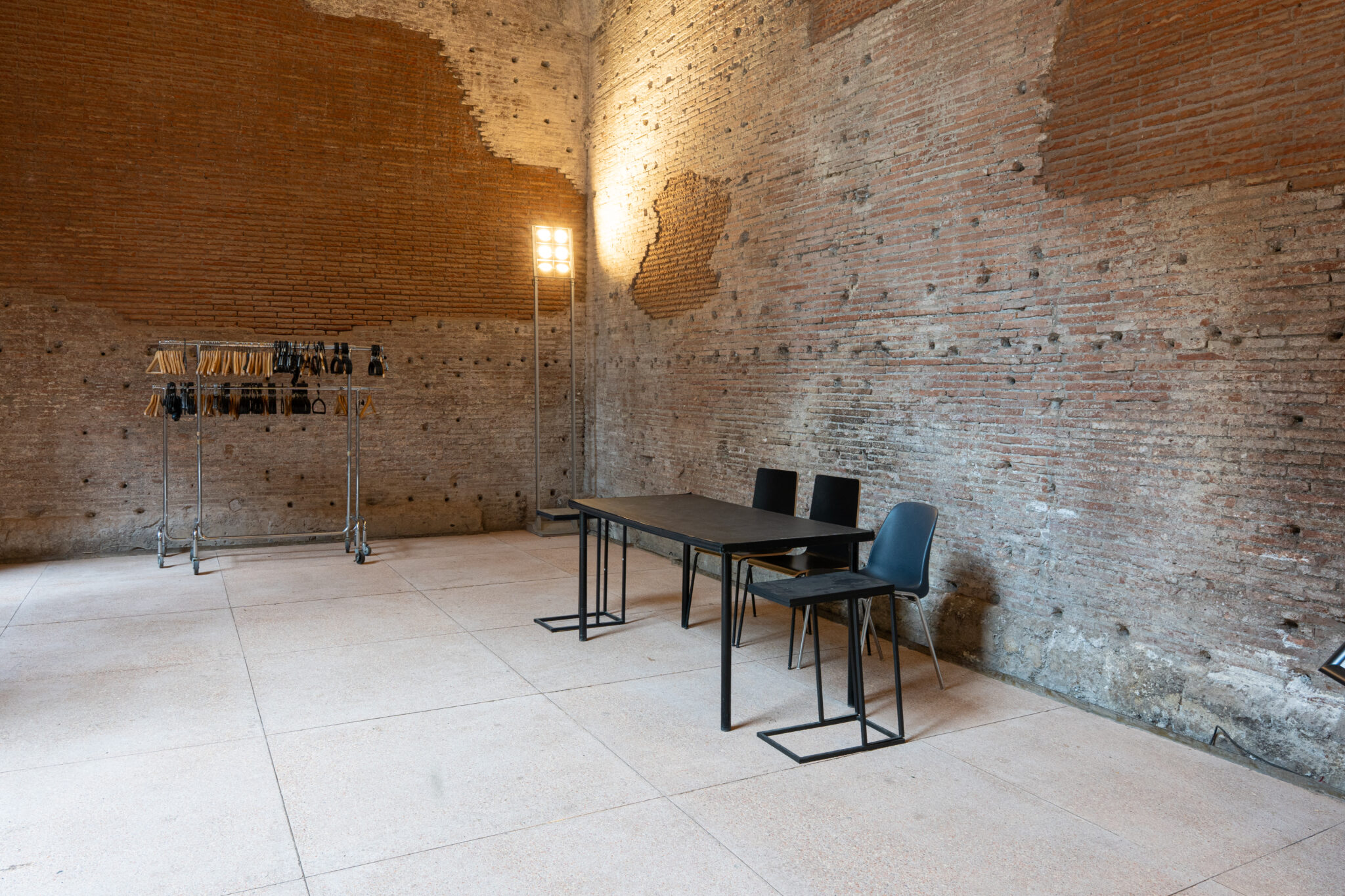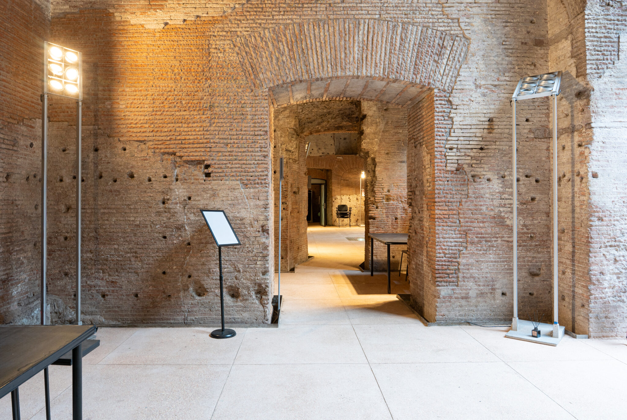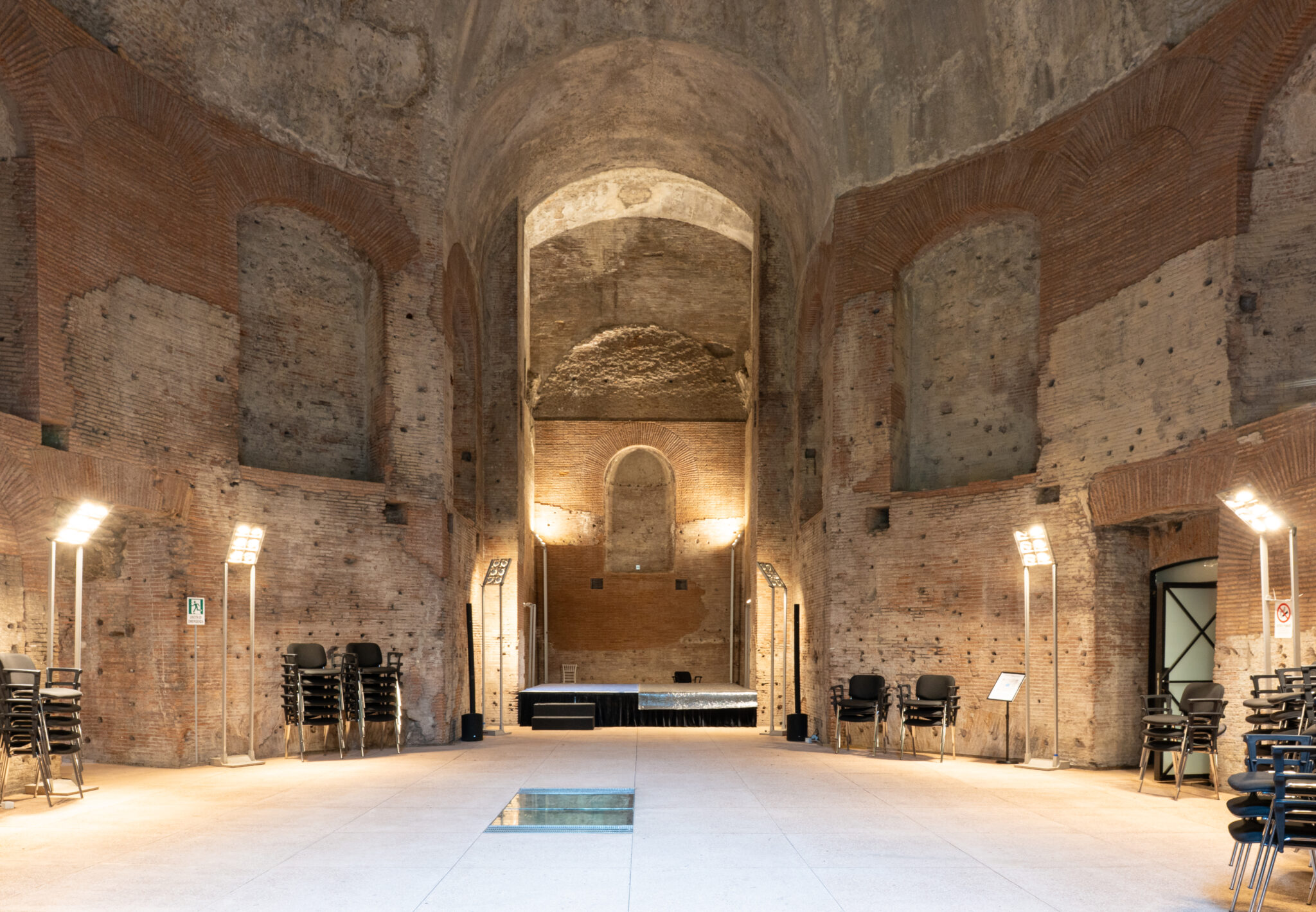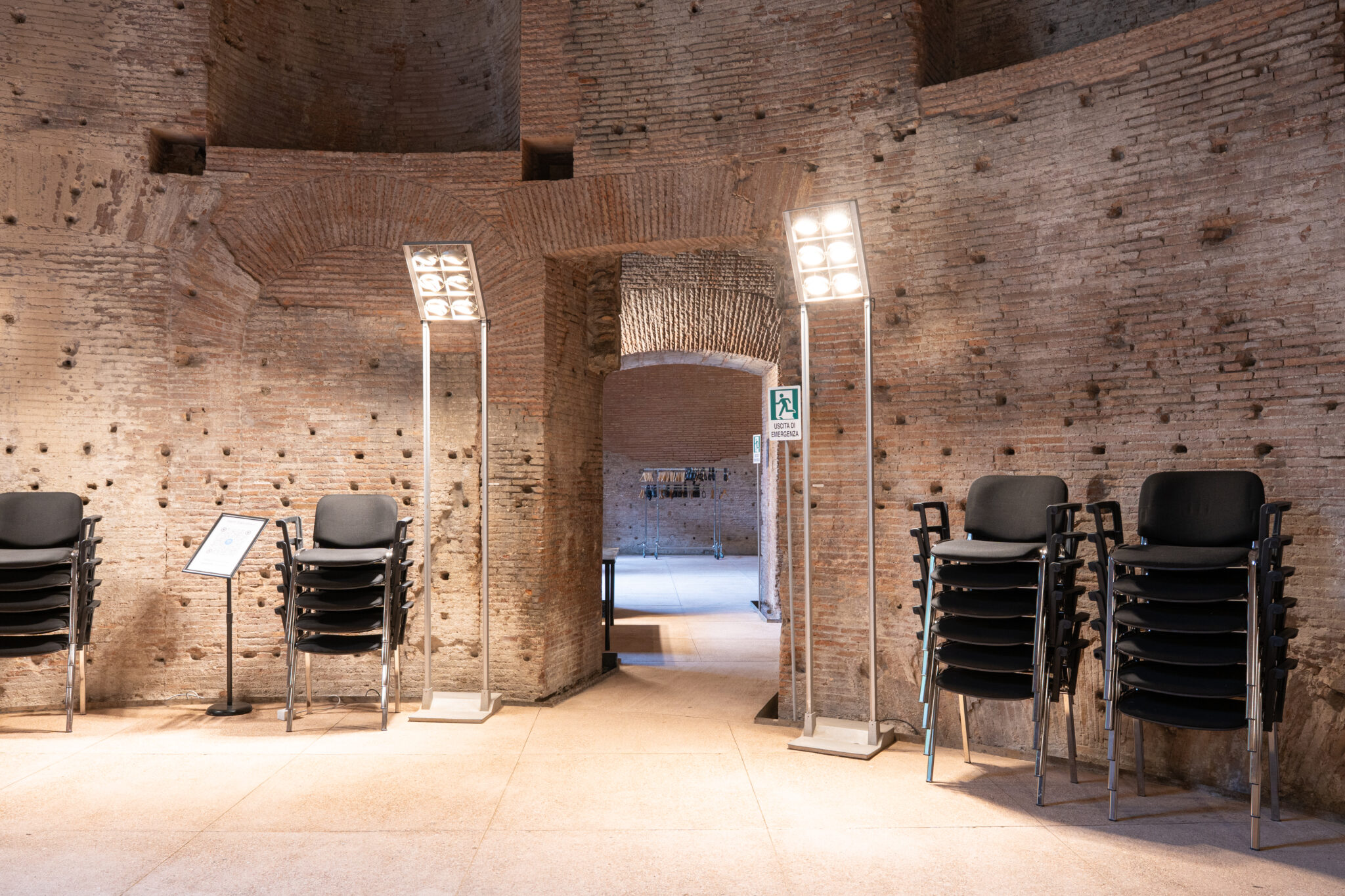Circa 220 mq di spazio interno suddiviso in più ambienti principali adatti a diverse configurazioni di allestimento.