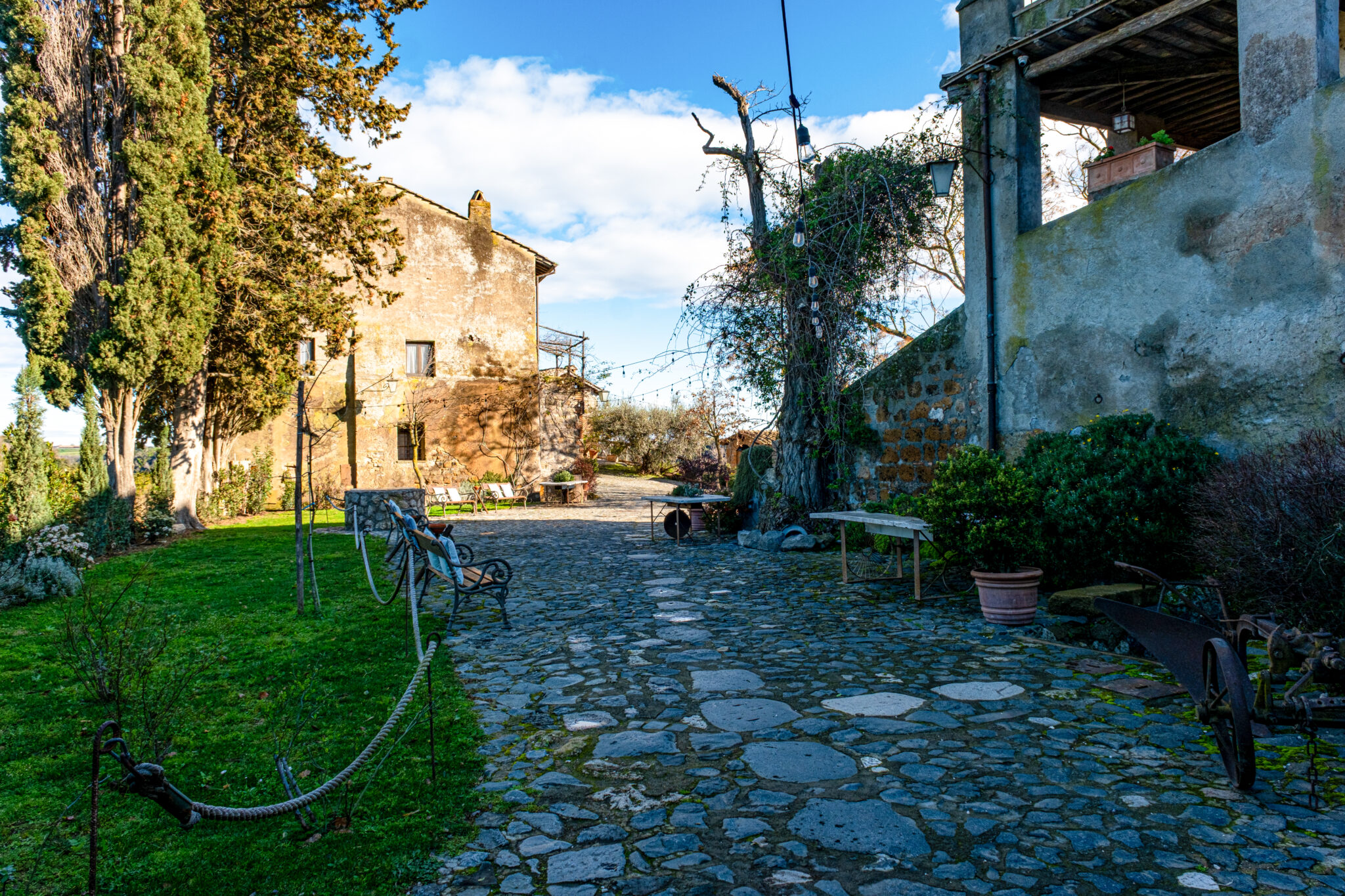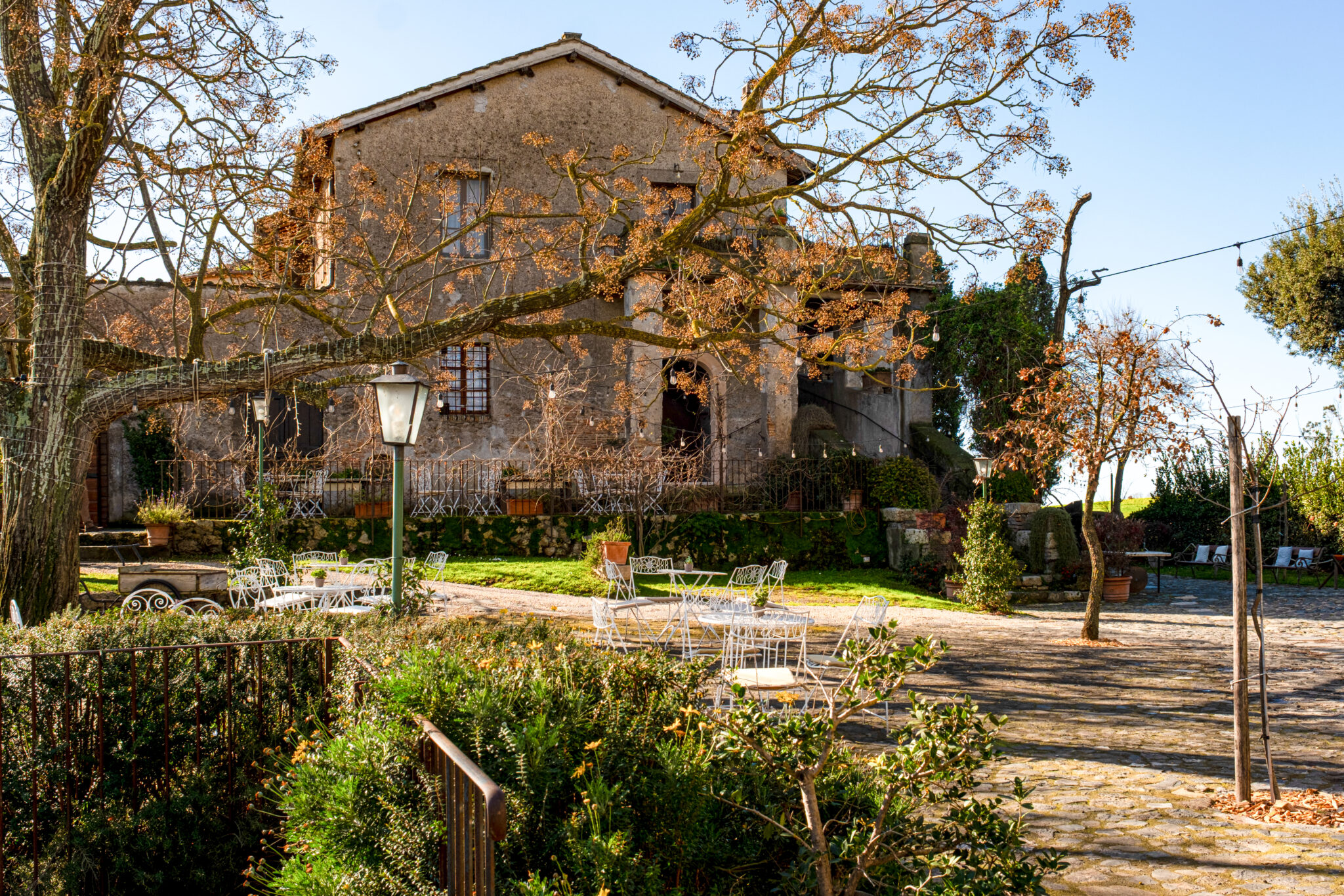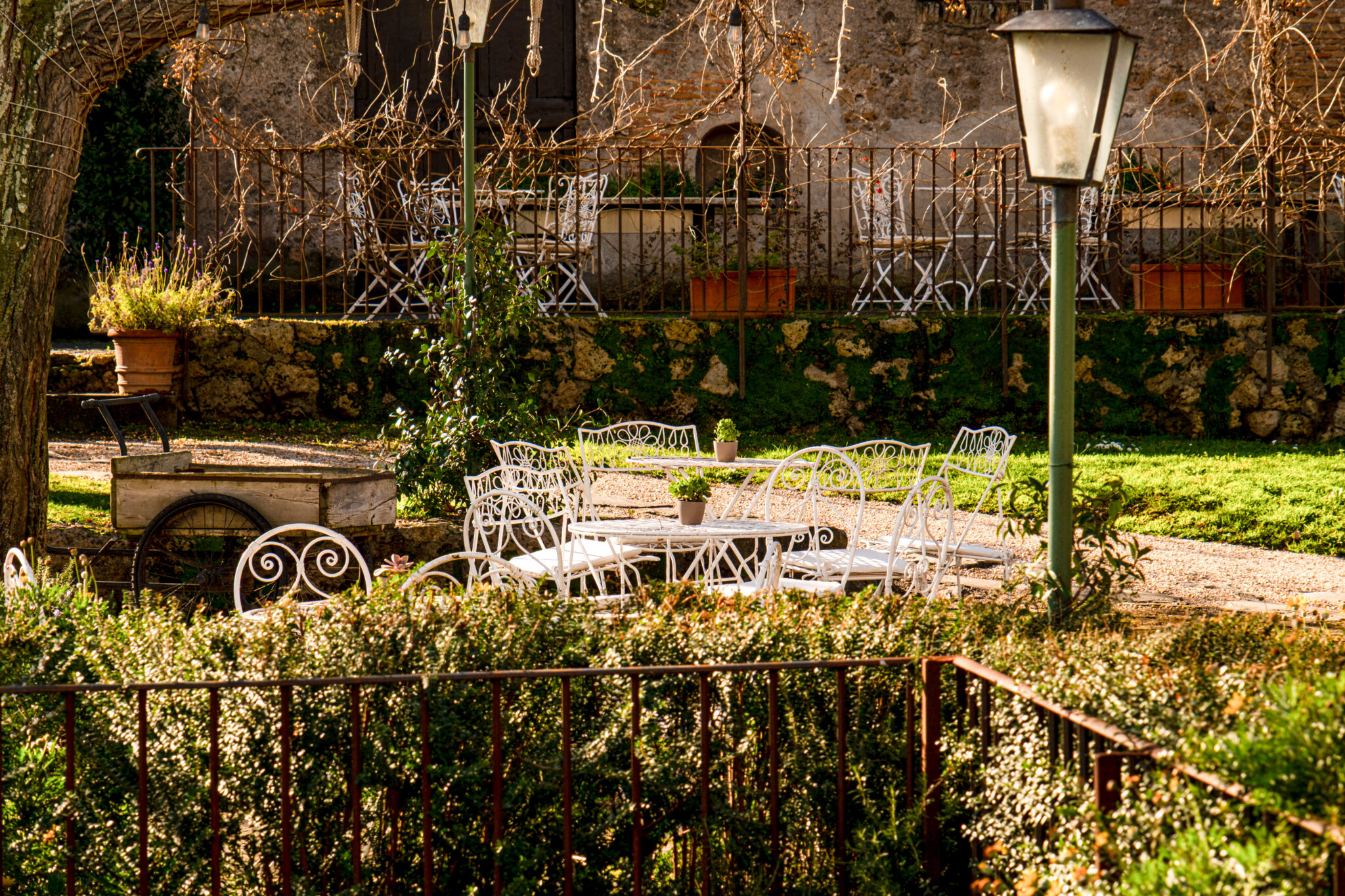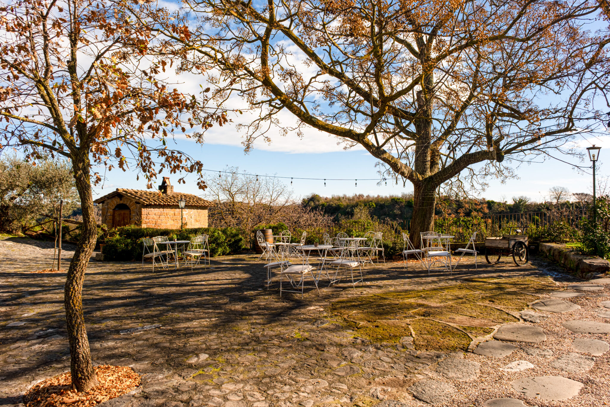 Il complesso si sviluppa all’interno di un contesto di casali e corti in pietra con giardini e terrazze affacciate sul paesaggio circostante, offrendo un’atmosfera autentica e suggestiva per eventi in ogni stagione.