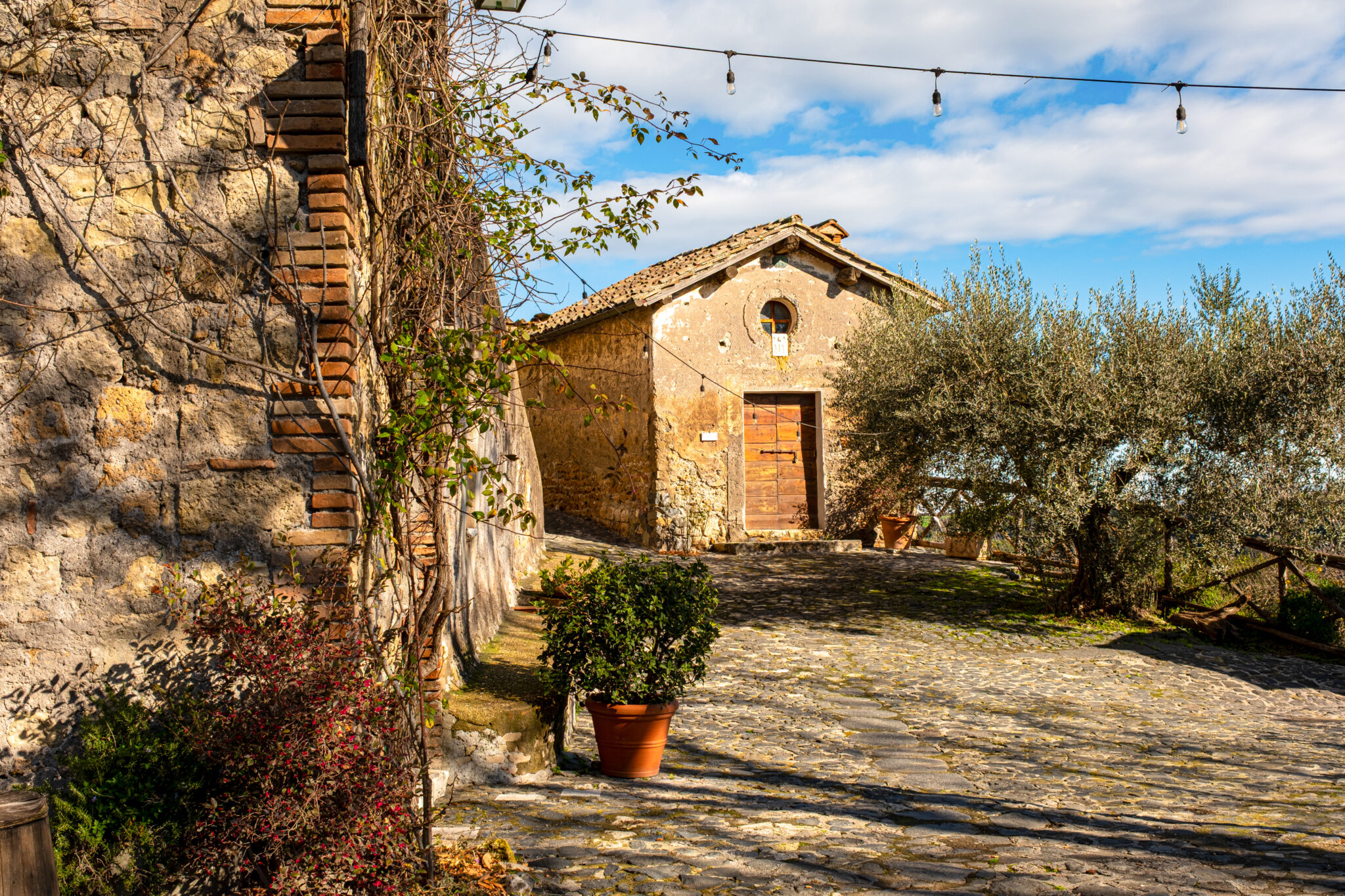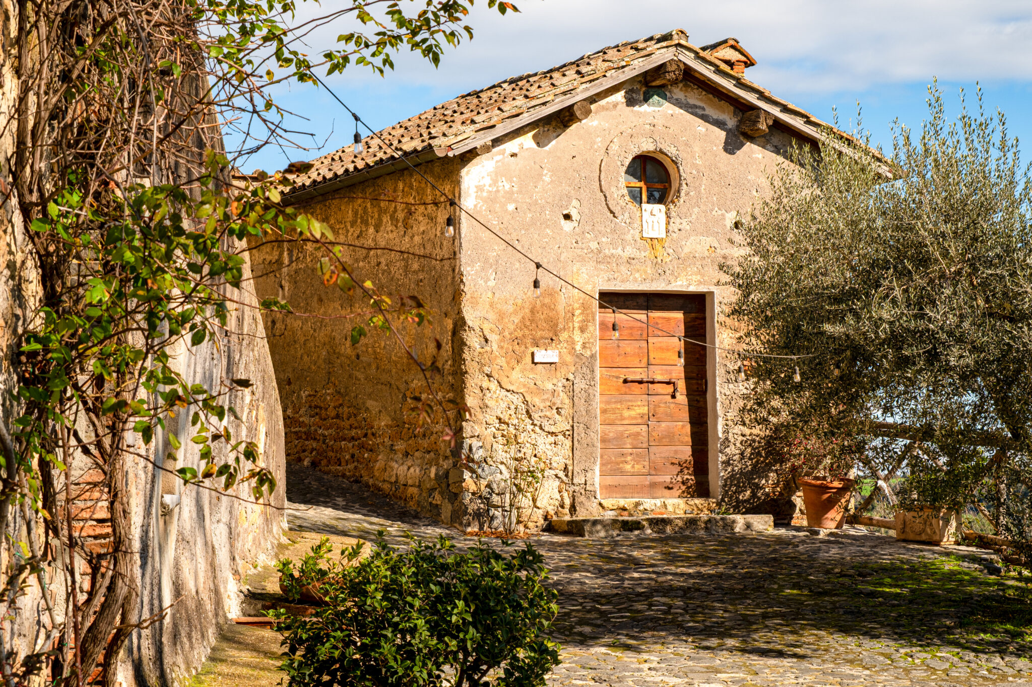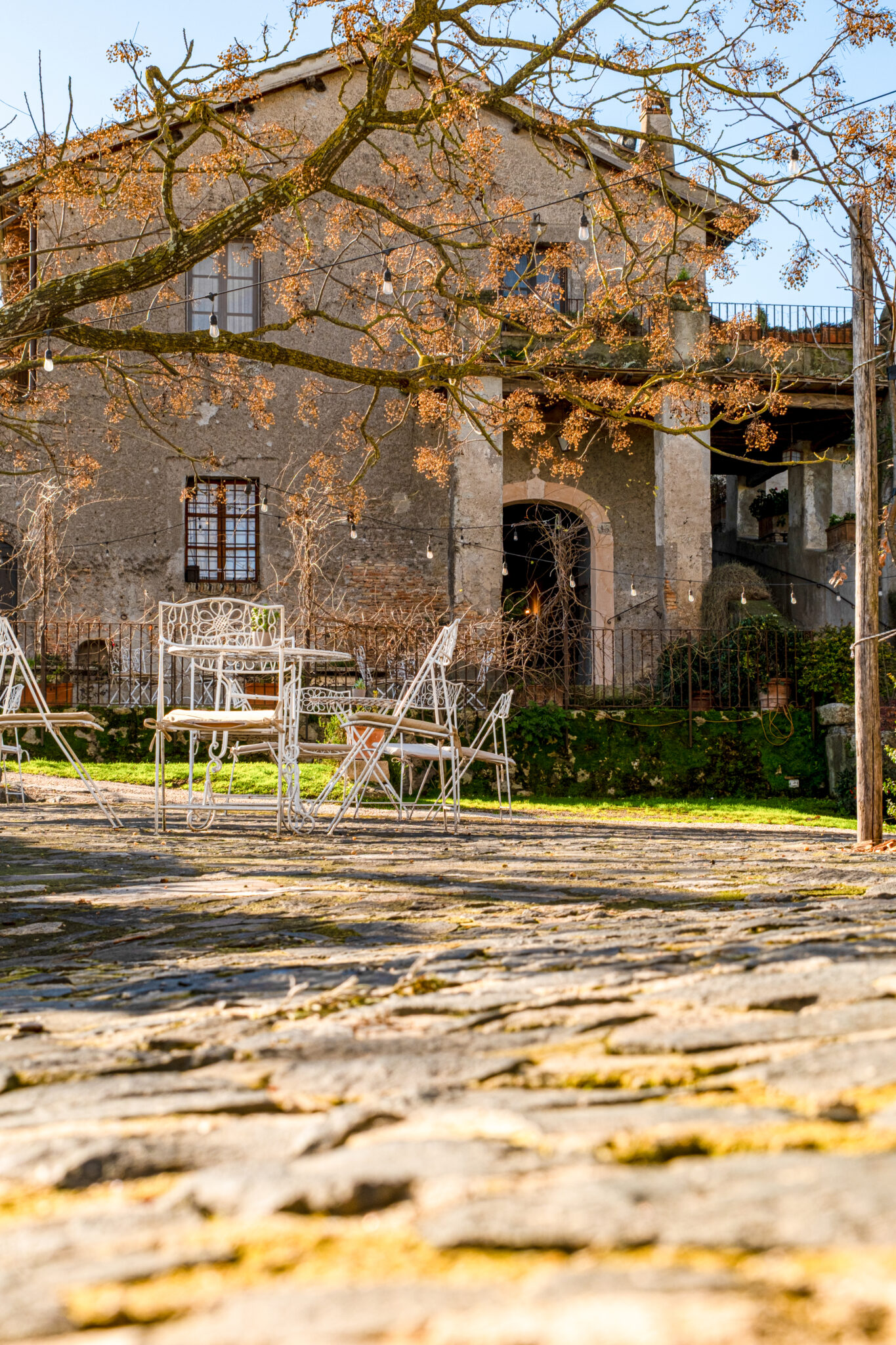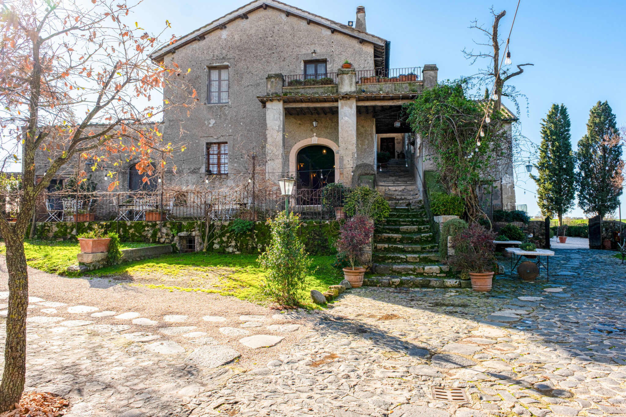 Il complesso si sviluppa all’interno di un contesto di casali e corti in pietra con giardini e terrazze affacciate sul paesaggio circostante, offrendo un’atmosfera autentica e suggestiva per eventi in ogni stagione.