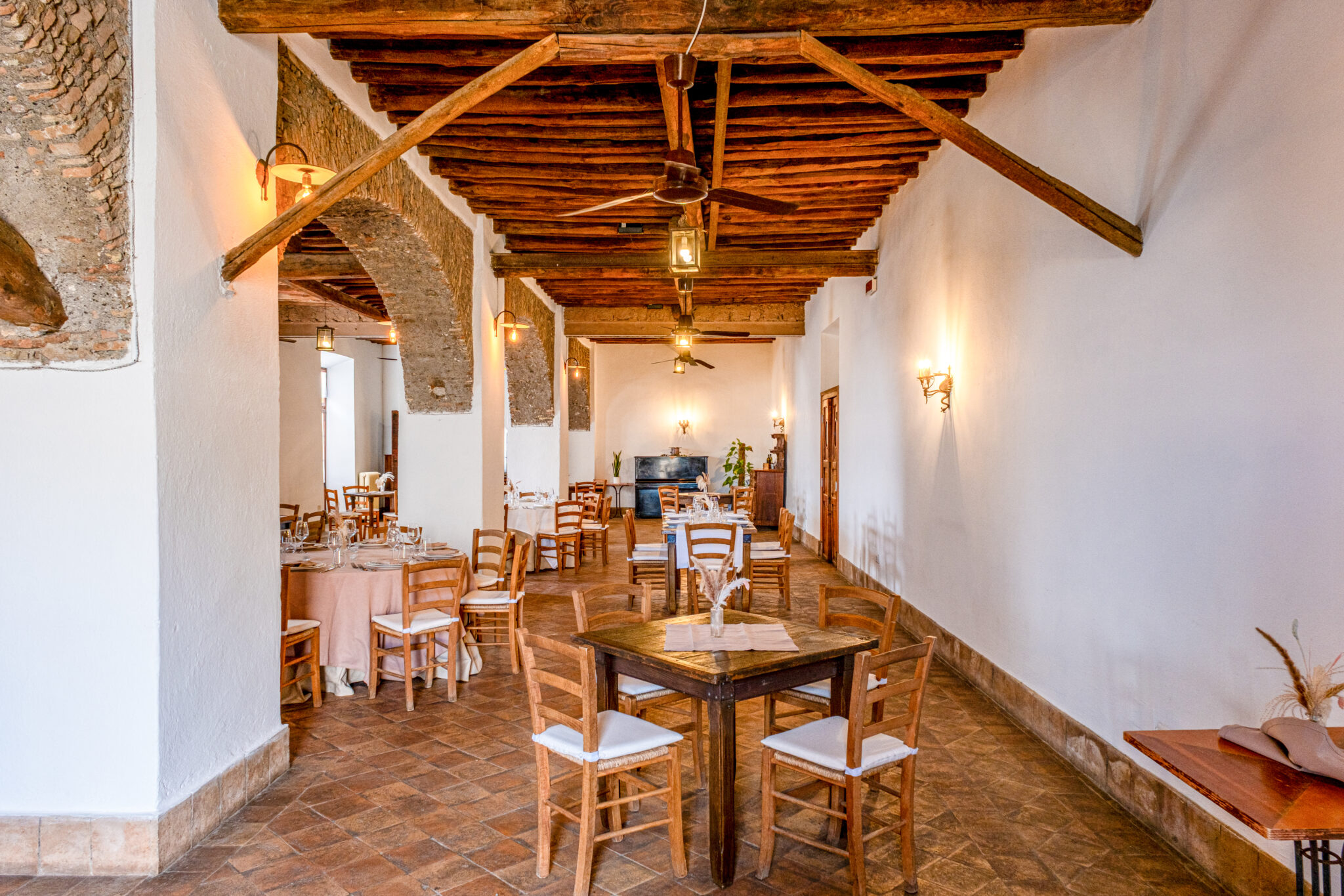 Gli spazi comprendono circa 250 mq interni con ambienti rustici e accoglienti caratterizzati da soffitti in legno, archi in muratura e sale luminose, oltre a 400 mq di spazi esterni ideali per ricevimenti, aperitivi e momenti conviviali all’aperto.